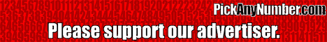 NOTE: Once your order has been verified, it will be placed in our ad database. All orders must be approved for content. If your ad is not a fit for PickAnyNumber.com, you will receive a full refund. NOTE: Your ad must not break out of frames. It will be tested before being accepted. If it passes the frame test initally, but later fails, we reserve the right to cancel the AD and refund part of NONE of the payment used for payment. If you do not have a banner to advertise, you may type the text you want displayed in the Banner URL area or you may use one of our banners below: